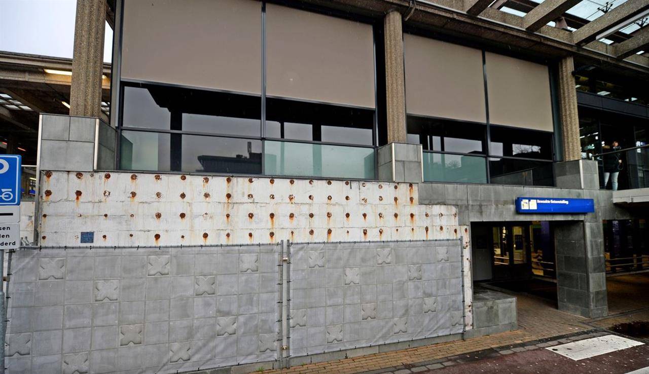 De treurige aanblik van de zuidgevel van het stationsgebouw toont hoe desastreus een verbouwing kan uitpakken. In 2000 werden aan de kant van het busstation natuurstenen platen aangebracht. Ze lieten echter binnen de kortste keren los. Sindsdien is de muur beschadigd en voor een deel afgedekt met doeken.