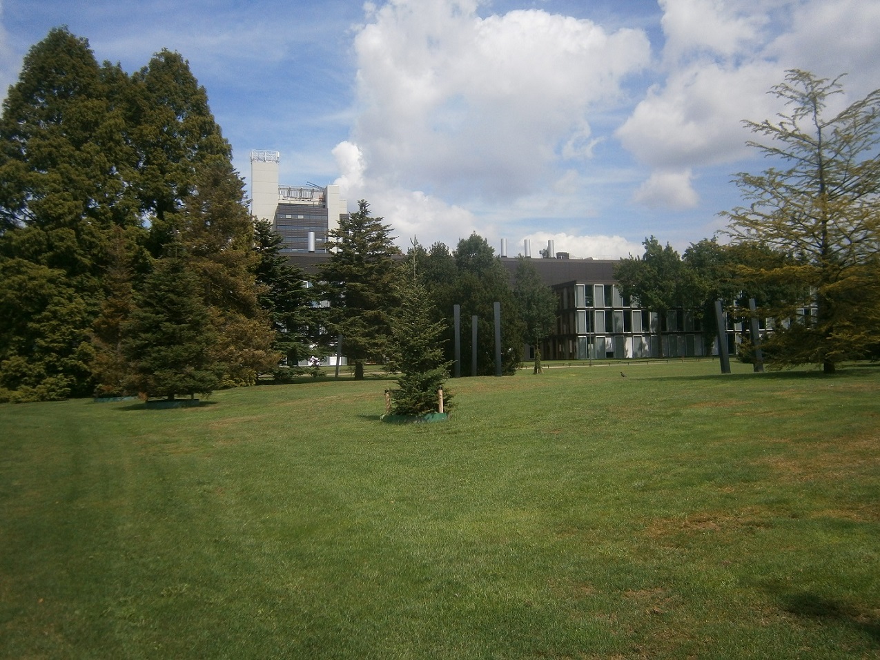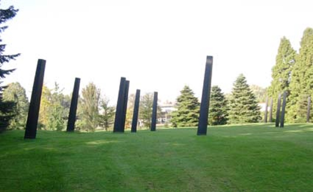 Hallenweg, thv de Achterhorst en Pinetumpad op de Universiteit Twente kunstwerk Kolommen van Evert Strobos.