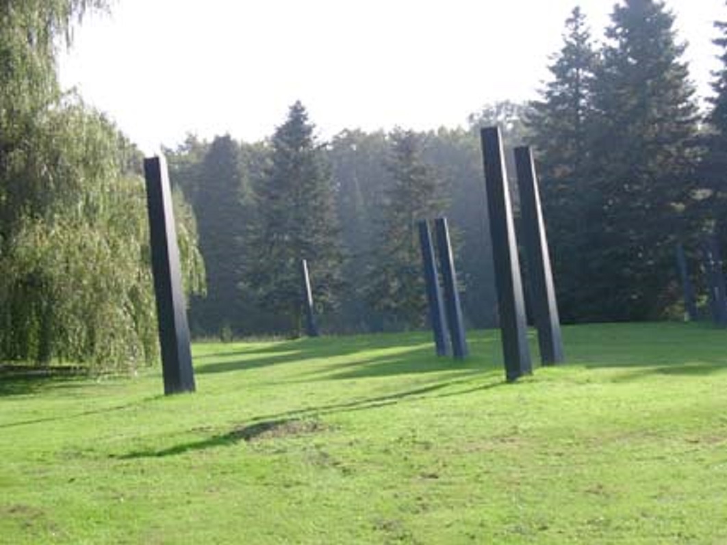 Evert Strobos geldt als één van de belangrijkste kunstenaars die Hengelo voortbracht. Hij is in de vroege jaren zestig opgeleid aan de AKI in Enschede en de ’Staatliche Kunstakademie’ in Düsseldorf. Hij heeft de Gerard ter Borchprijs voor monumentale kunst gewonnen vanwege zijn ’economisch gebruik van de beeldende middelen vorm, materiaal en kleur’ en heeft diverse beelden in de openbare ruimte van Nederland gerealiseerd. Dit beeld bestaat uit 14 identieke elementen die misschien het best te omschrijven zijn als kolommen die aan de onderkant in een wig uitlopen. Het is kenmerkend voor het werk van Strobos: het is monumentaal, sober, ritmisch en krachtig. Het kunstwerk staat temidden van de verzameling bomen van het Pinetum. Het lijkt speciaal voor dit terrein gemaakt maar is een schenking van oud-rector magnificus Draijer bij wie dit beeld in de voortuin stond. In de beeldentuin van het museum Kröller-Müller zijn vergelijkbare gedraaide kolommen van Strobos’ hand te zien. bron: http://www.kunstnonstop.nl/collectie/de ... 1WYnTpLimw
