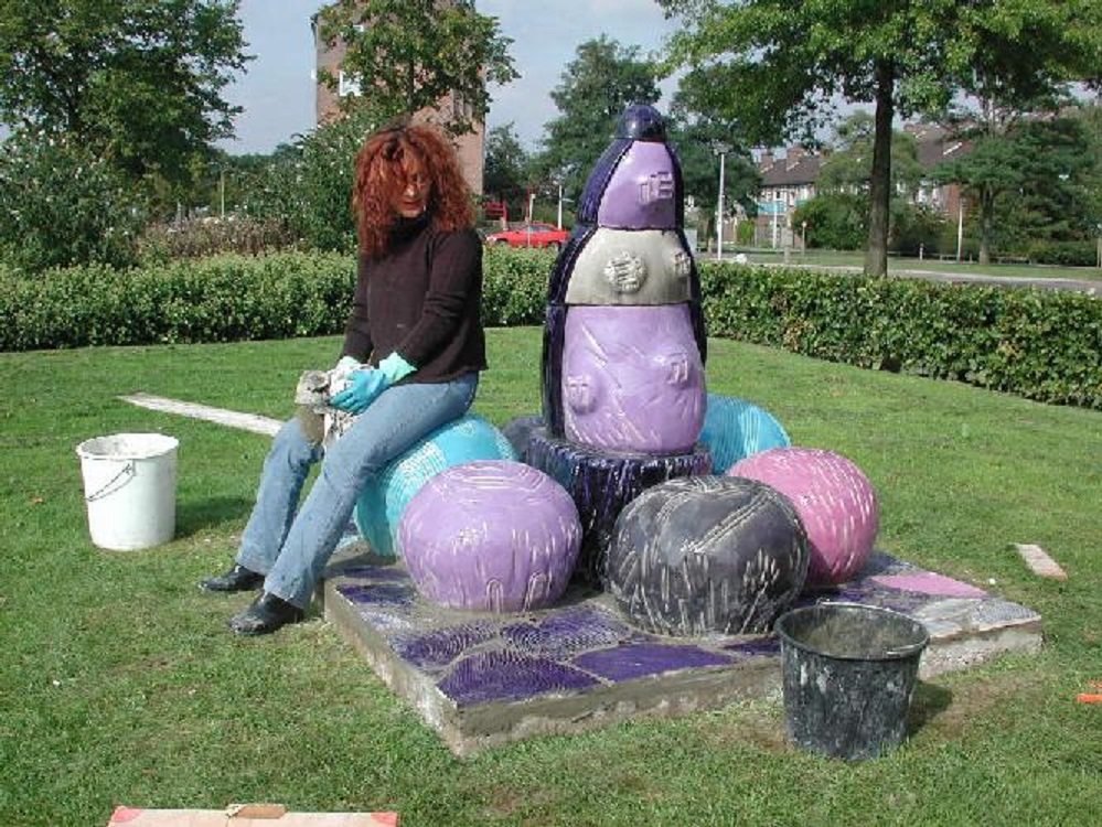 Deze opdracht is gerealiseerd in het kader van het ’KunstZinnig’ project, een serie kunstopdrachten in Enschede geïnitieerd door het Innovatief Centrum voor Kunstenaars (ICK) waarbij beginnende kunstenaars worden ingezet om de kwaliteit van de leefomgeving te verhogen. ’Cocon’ is een samengestelde sculptuur, een stapeling losse, keramische objecten. Alle elementen zijn anders van oppervlakte, verschillend gestructureerd en in wisselende kleuren geglazuurd. Het is speciaal ontworpen voor een vlindertuin. De vormen doen denken aan vlindereieren, een glanzende rups die zich uiteindelijk zal verpoppen. Cocon verenigt twee tegenstrijdige eigenschappen van vrijheid. De ene is het recht op bescherming, het recht op een cocon. Maar het verwijst ook naar het vermogen om te veranderen, te transformeren. Persheng Warzandegan was geruime tijd in haar geboorteland Iran werkzaam als beeldend kunstenaar voordat zij naar Nederland vluchtte en afstudeerde aan de AKI in Enschede. ’Mijn inspiratie haal ik uit mijn omgeving, mijn familie en vrienden, uit de geschiedenis van mijn volk en mijn dromen en uit de muziek.’ bron: http://www.kunstnonstop.nl/collectie/de ... 1hUezpLimw