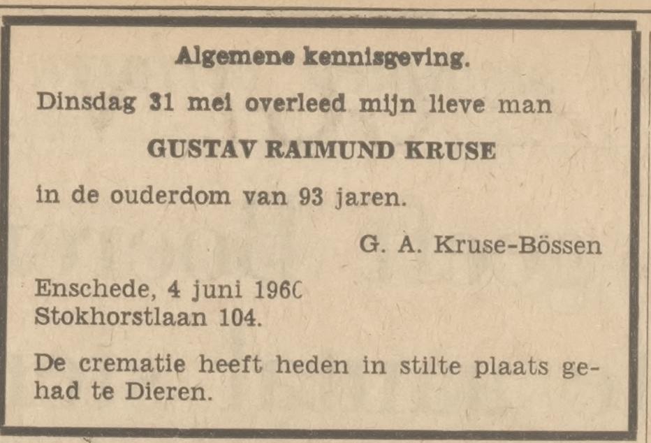 Kruse, G.R. Stokhorstweg 104.