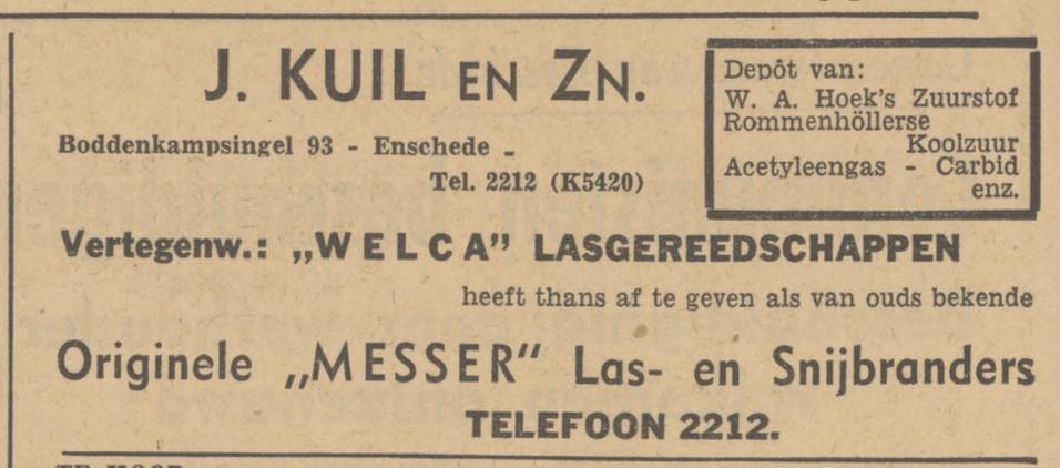 2212 Kuil & Zn., J. Depôt v. Acetyleengas, lev.v. Autog.laschgereedsch., Boddenkampsingel 93