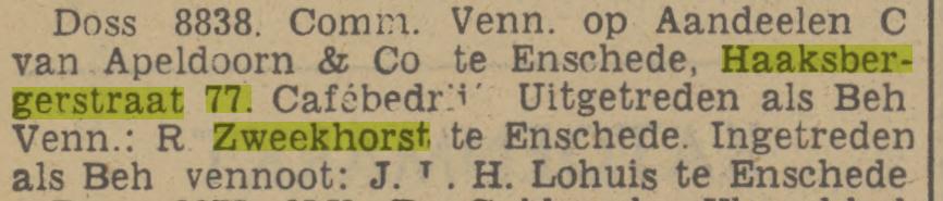 Haaksbergerstraat 77 cafebedrijf R. Zweekhorst krantenbericht Tubantia 21-7-1940.jpg