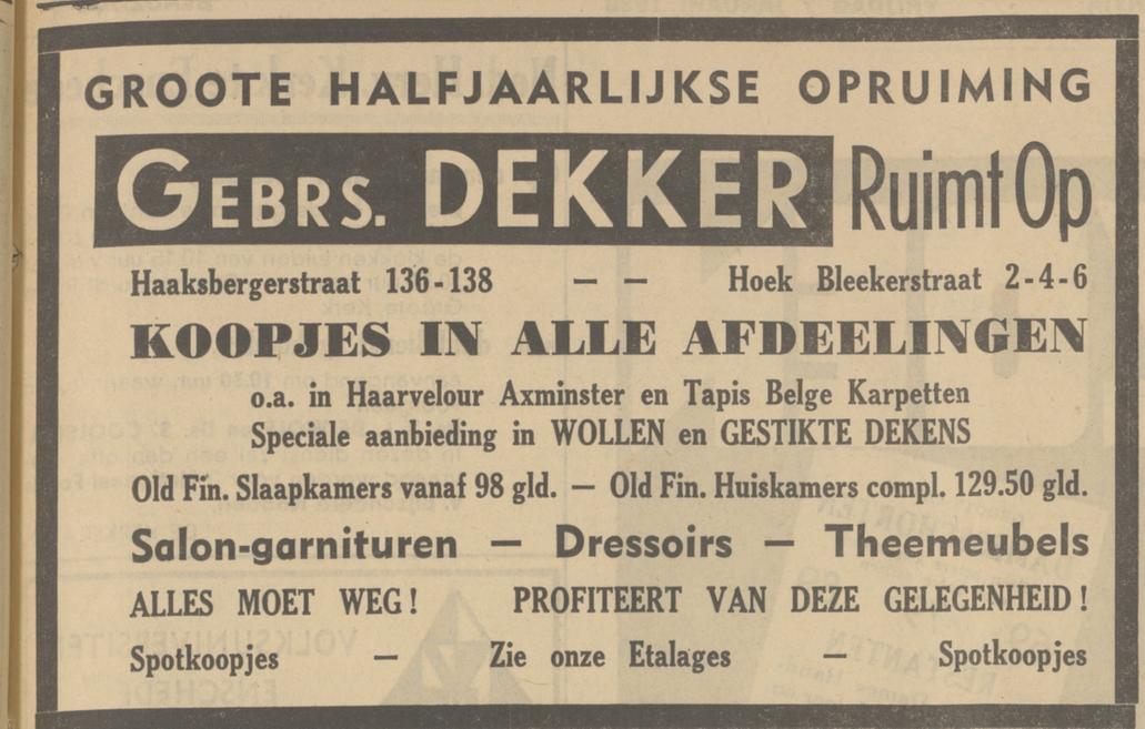 Dekker J. koopman Haaksbergerstraat 138 advertentie 7-1-1938