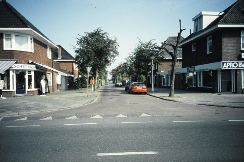 Haaksbergerstraat 526-528 hoek Dr. P. van Hoekstraat  Haaksbergerstraat met Schepers Mode en APRO B.V. Boekhoud- en Belastingadviebureau. begin jaren 90.jpeg