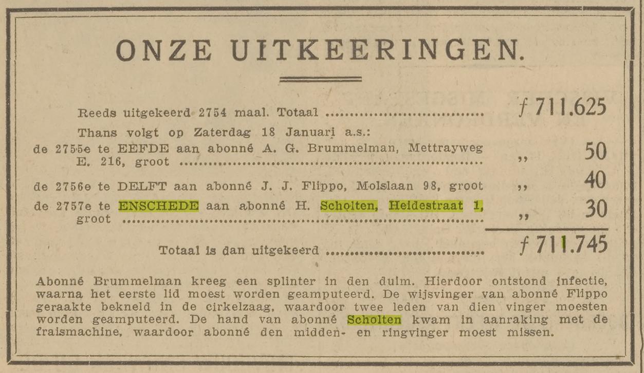 Scholten H. timmerman Heidestraat 1 krantenbericht 18-1-1930
