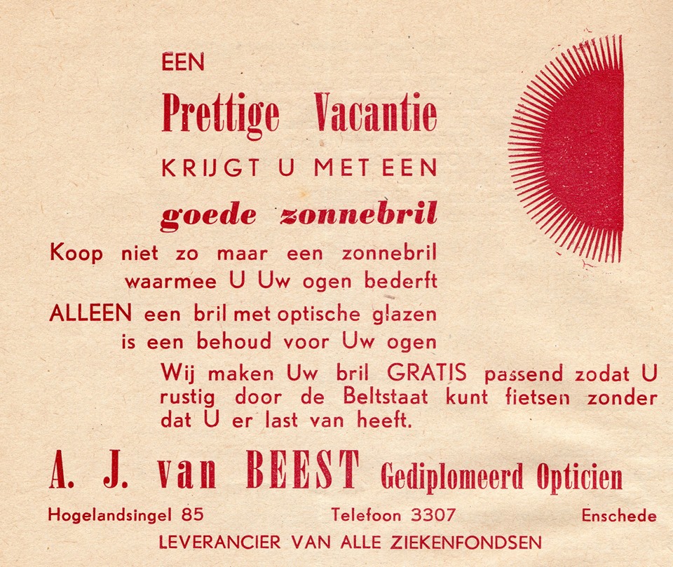 Hogelandsingel 85 advertentie A.J. van Beest opticien. bron: facebook