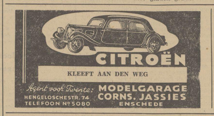 Hengelosestraat 74 Citroen garage C. Jassies advertentie Tubantia 28-2-1940.