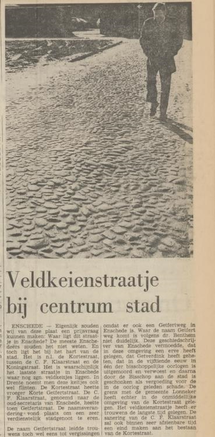 Kortestraat krantenbericht Tubantia 24-2-1971