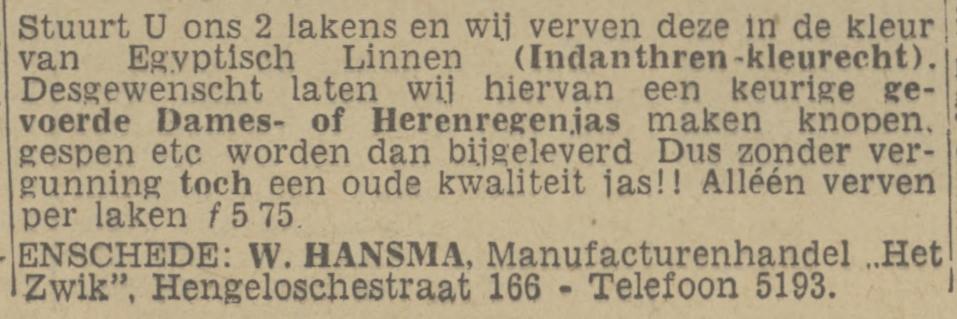 Hansma W. manufact. Hengelosestraat 166 advertentie 3-11-1943