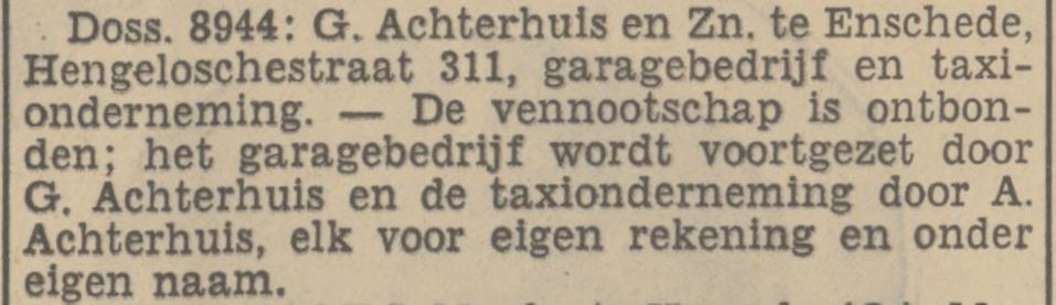 Achterhuis G. garagehouder, taxibedrijf Hengelosestraat 311 krantenbericht 3-6-1937
