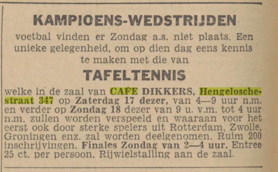 Hengelosestraat 347 cafe Dikkers Advertentie. Twentsch nieuwsblad. Enschede, 16-04-1943..jpg