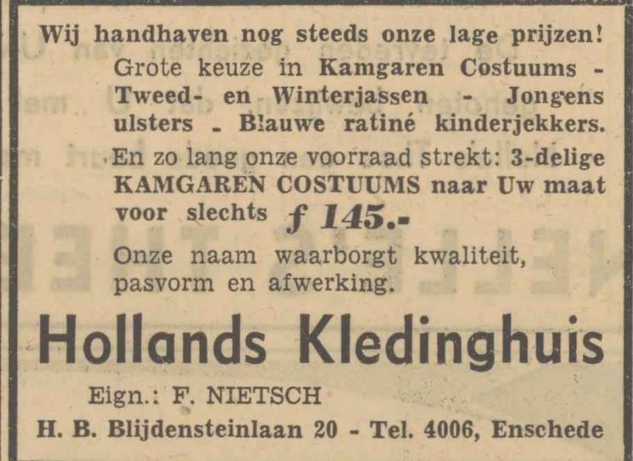 4006 Nietsch, F.F.G. Heren-en jongensconfectie, H.B. Blijdensteinlaan 20