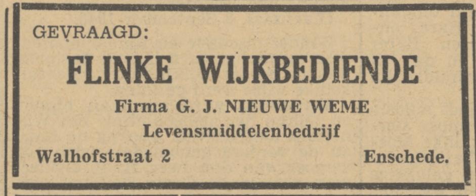 4126 Nieuwe Weme, G.J. Koloniale waren, bakk.art., Walhofstraat 2