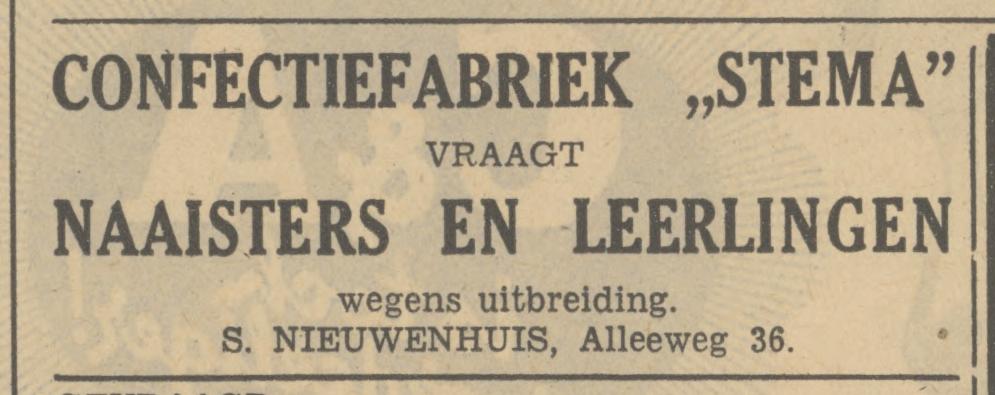 Nieuwenhuis, S. Confectiefabriek, Alleeweg 36
