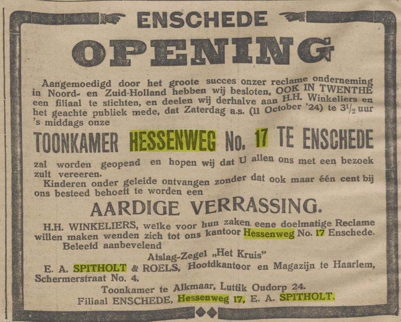 Hessenweg 17 E.A. Spitholt advertentie Overijsselsch dagblad 10-10-1924.jpg