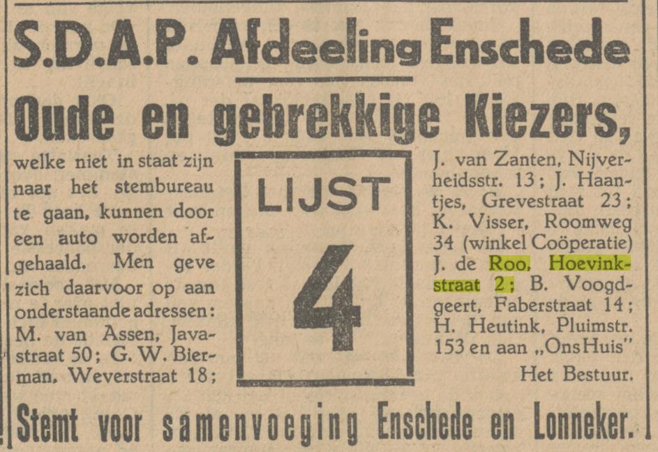 Hulsmeijer Joh.B.G. textielarbeider Heurmanstraat 21 advertentie 21-7-1936