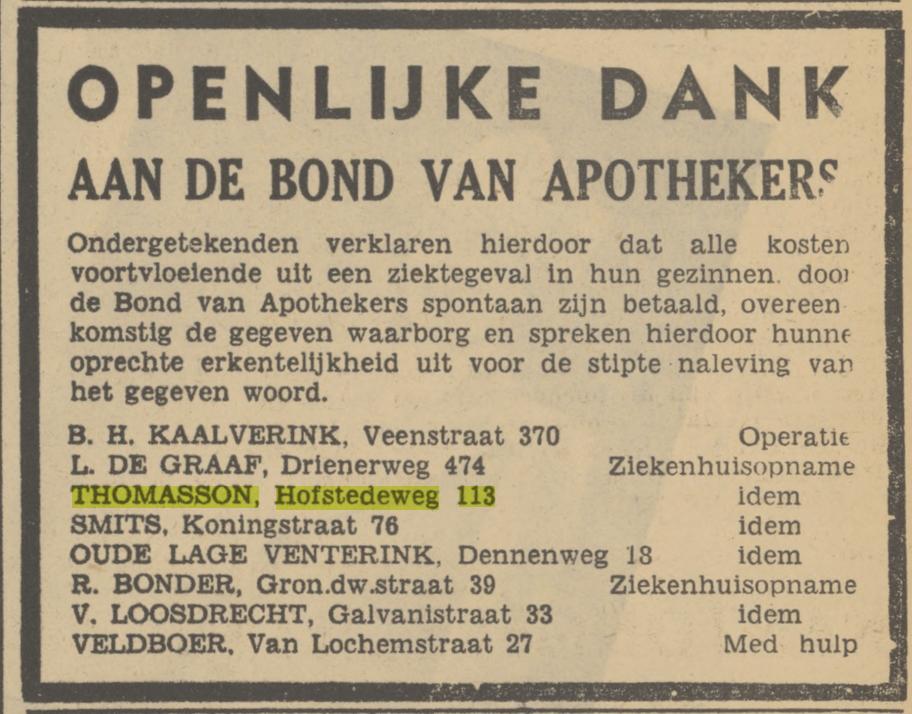 Thomasson W.B. metselaar Hofstedeweg 113 advertentie 4-5-1940