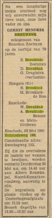Breukink G.H. fabrieksarbeider Hofstedeweg 186 advertentie 24-5-1961