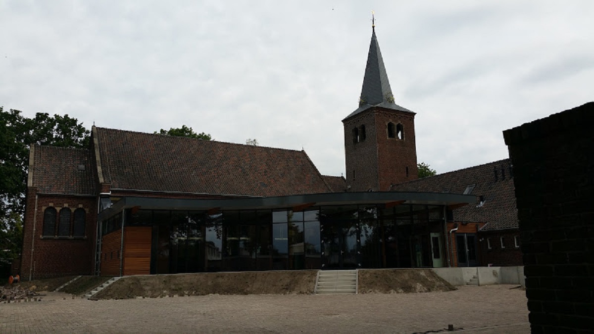 Het lagere op het noordoosten georiënteerde bouwdeel doet dienst als bijgebouw en biedt plaats aan twee kleine zalen, een garderobe, toiletten en een keuken. Dit bijgebouw is opgetrokken in een meer sobere stijl dan de kerk. De voorgevel en is voorzien van vierkante ruitvensters en een centraal geplaatste entree onder een natuurstenen luifel. Rechts in de achtergevel bevinden zich openslaande deuren met bovenlichten voorzien van glas-in-loodvensters. Aan beide zijden van de centraal geplaatste entree bevinden zich vier kleine venstertjes. bron: http://www.architectuurgidsenschede.nl/ ... 60/?char=V