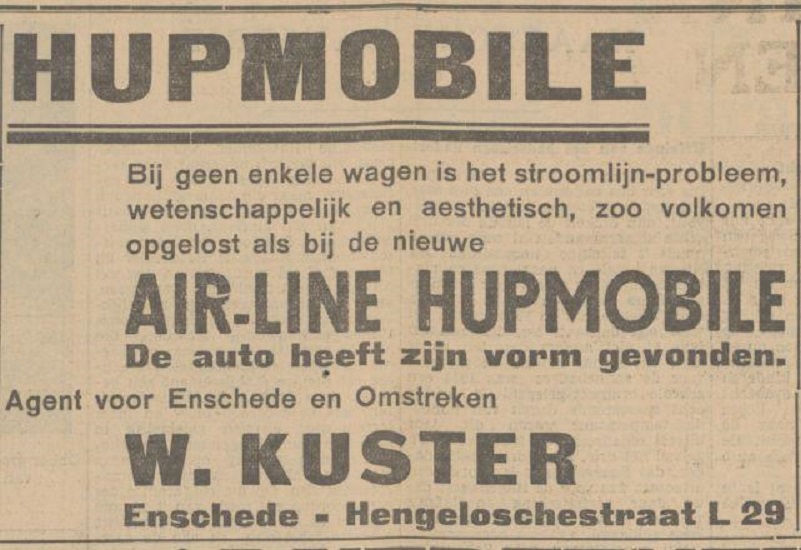 Hengelosestraat L 29 W. Kuster advertentie Tubantia 25-8-1934. Reclame voor een Air Line Hupmobile.