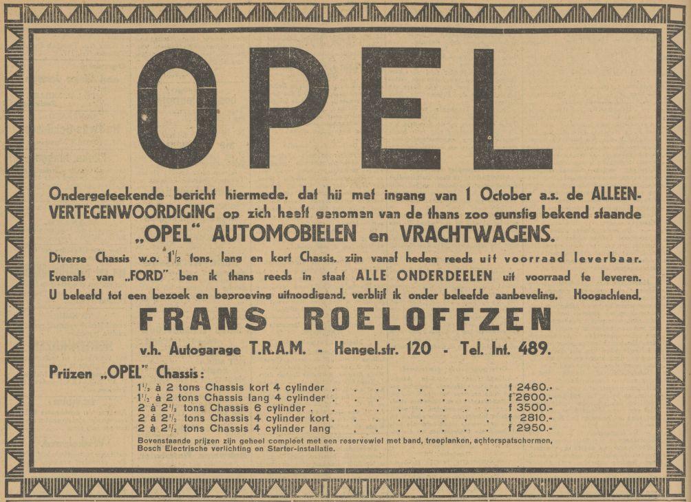 Hengelosestraat 120 Frans Roeloffzen v.h. Autogarage T.R.A.M. advertentie Tubantia 18-9-1928.