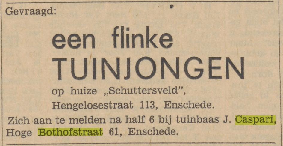 Caspari J. tuinman Hoge Bothofstraat 61 advertentie 24-8-1965