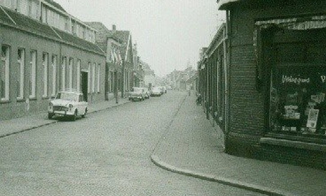 Hoge Bothofstraat 163 rechts hoek 2e Bothofdwarsstraat midden jaren 50  Links pensioen voor de gastarbeiders en rechts sigaretten kapperszaak Guichelaar.jpg