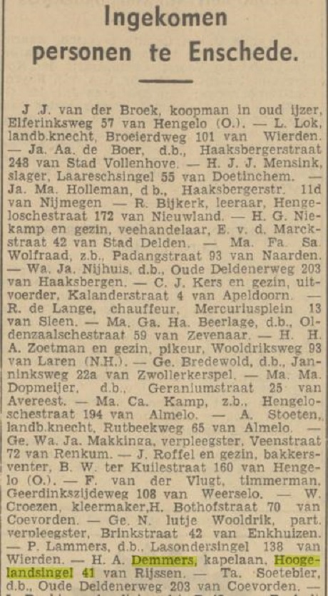 Hogelandsingel 41 H.A. Demmers kapelaan krantenbericht Tubantia 4-1-1938.jpg