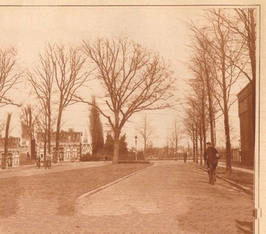 2 foto's van de Rembrandtlaan hoek Vondelstraat. 2e foto is van 1920. Nu is dat M.H. Tromplaan hoek Kortenaerstraat. Op de plaats van de villa links op de hoek is later het gebouw voor het ziekenfonds gebouwd. Nu het Tromphuis.
