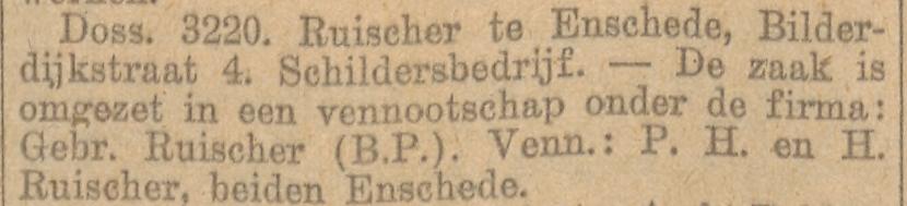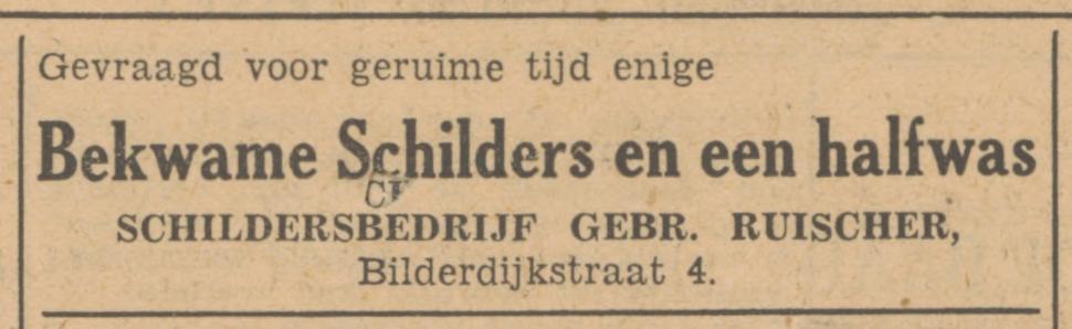 Bilderdijkstraat 4 Schildersbedrijf Gebr. Ruischer advertentie Tubantia 26-3-1949