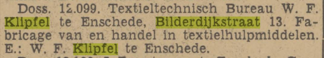 Klipfel W.F. textieltechnicus Bilderdijkstraat 13 krantenbericht 2-1-1940