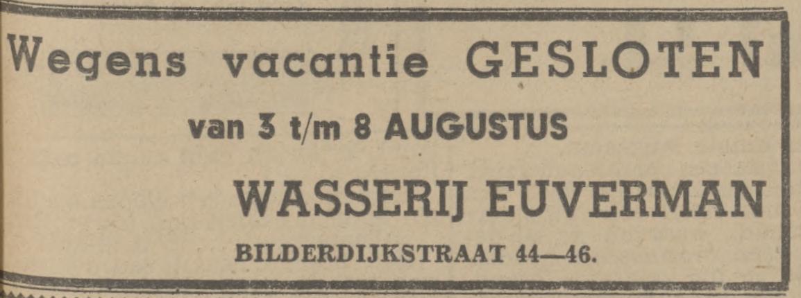 Euverman J. wasserij Bilderdijkstraat 44 advertentie 25-7-1942