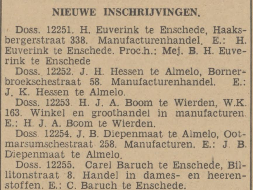 Bilderdijkstraat 21 Herman Assink advertentie Tubantia 12-3-1942