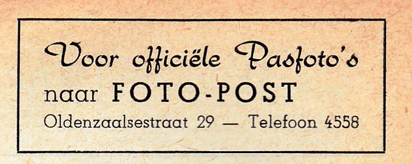 4558 Post, Fotograaf Oldenzaalsestraat 29.