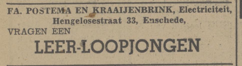 5751 Postema & Kraayenbrink, Fa. (Eig. H. Kraayenbrink), El. techn. inst., radio en electr. artikelen, Hengelosestraat 33