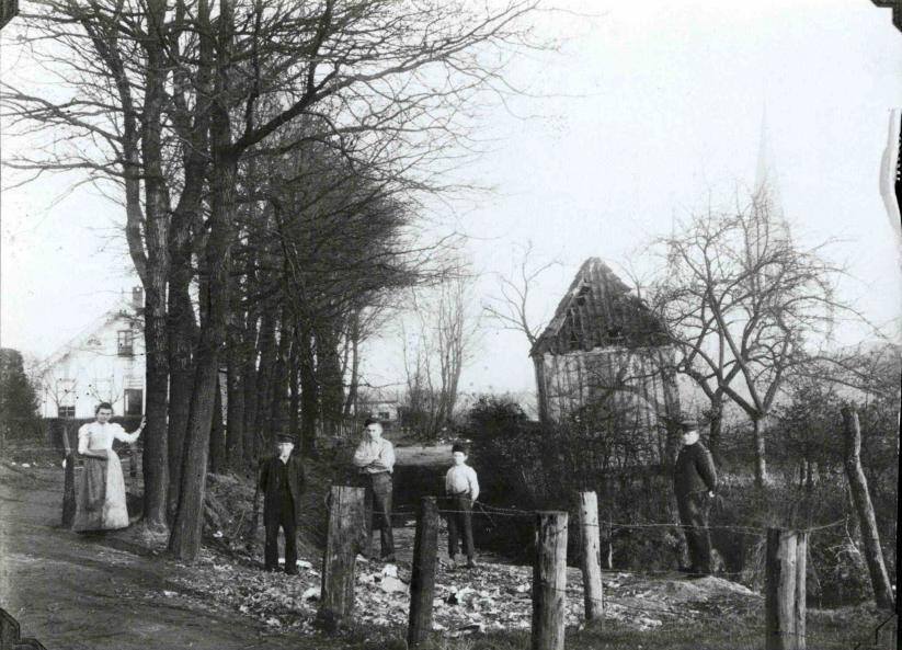 Foto is gemaakt in 1899. Rechts Gerrit Jan Mulstege de Touwslager en links zijn 2e vrouw Mevr. Lodeweges zwanger van haar eerste kind ook Gerrit Jan Mulstege die op 14 december 1899 geboren is. Op de foto het witte huis hun woning en touwslagerij. Op de originele foto (in mijn bezit) staat boven de deur G.J. Mulstege touwslagerij te lezen.
