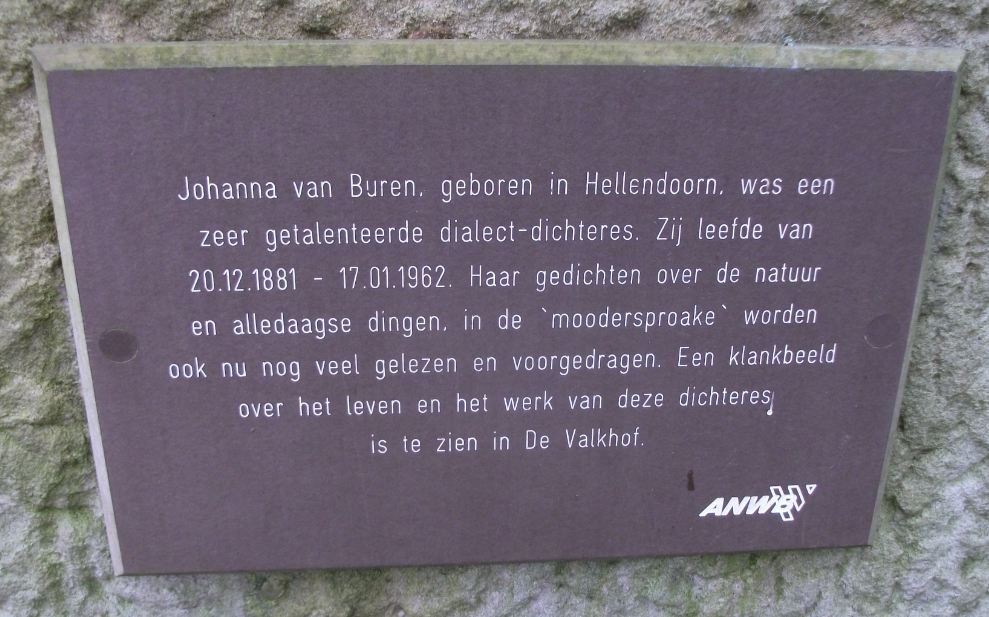 Doo een van de oonderwiezers doarop antwoorn: Wij werken met ons hoofd, was t efkes stil. Doarop spöln Jans n bal teruw en zear: Dan geet t ow ja net as dee osns van de Heidemaatschappiej, dee wearkt ok met n kop!