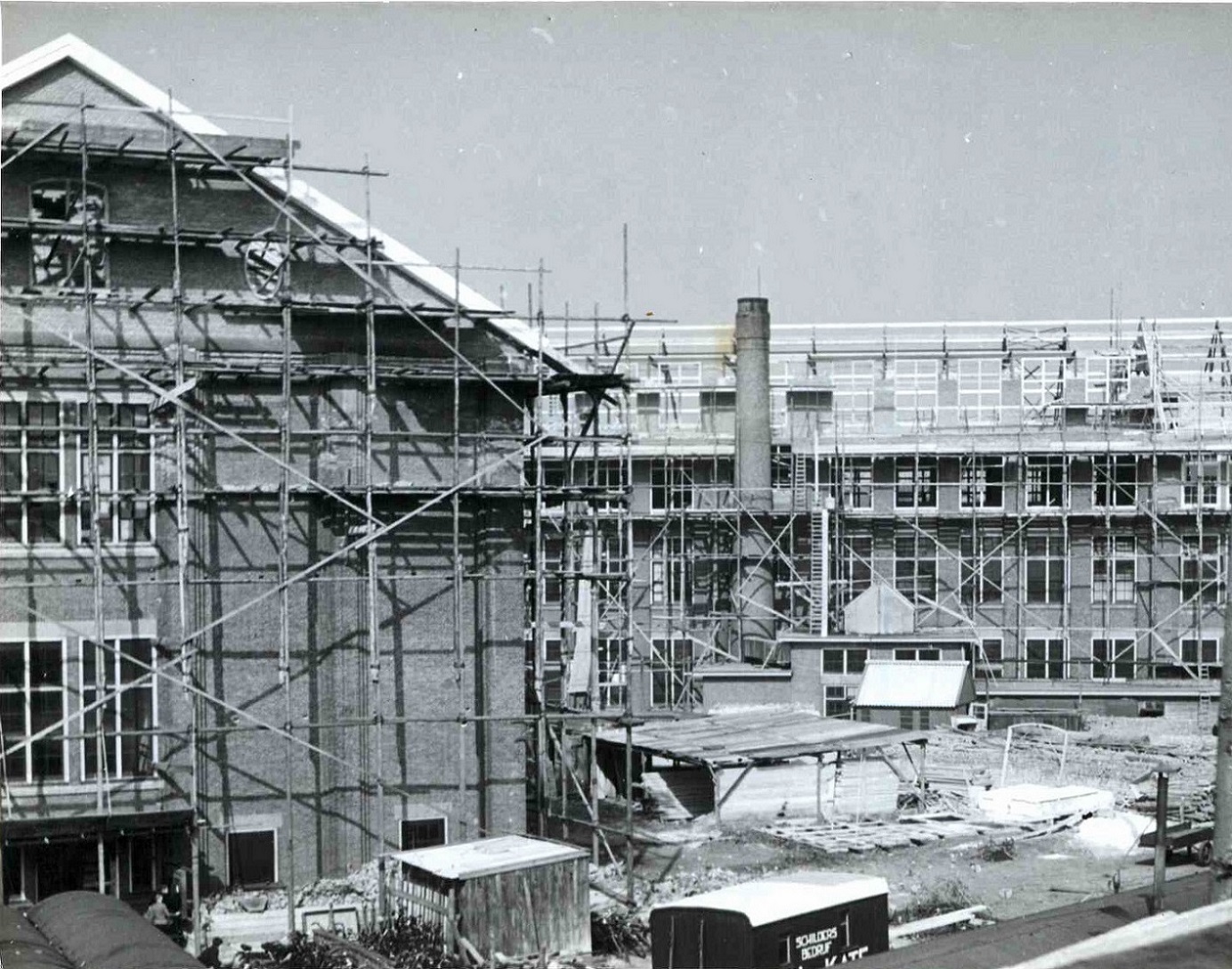 Schipper en Meyerink, N.V. Aannemersbedrijf, werk, directie-keet Ambachtsschool