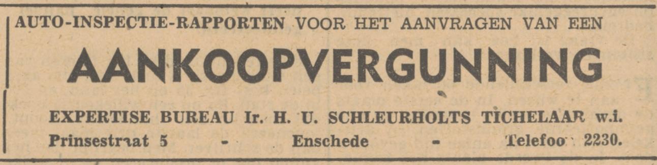 Het Expertisebureau Ir. H.U. Schleurholts Tichelaar was eerder gevestigd aan de Prinsestraat 5.