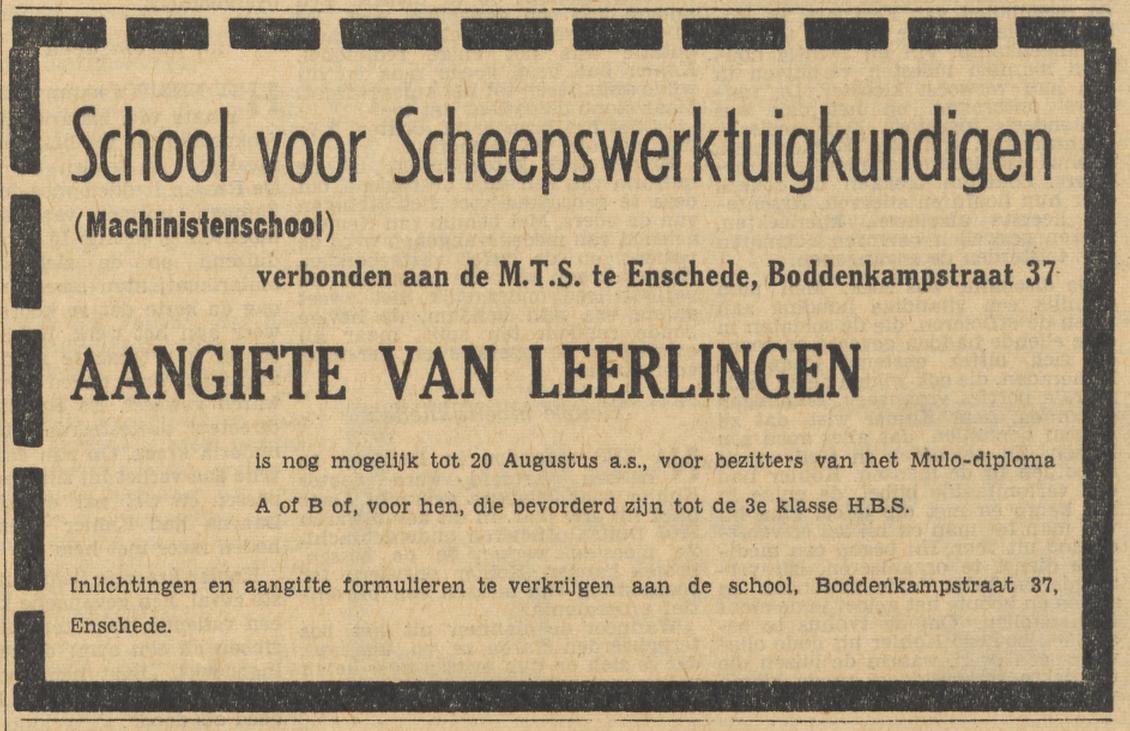 School voor Scheepswerktuigkundigen (Verbonden aan de Middelbare Technische School), Boddenkampstraat 37