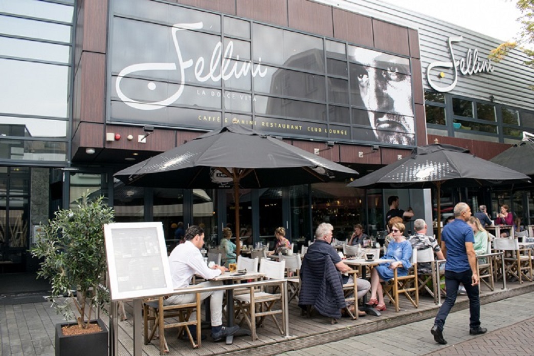 De ingang van de bioscoop Alhambra werd na de verbouwing verplaatst naar Bolwerkstraat 2. Later kwam daar het restaurant en uitgaansgelegenheid Fellini.