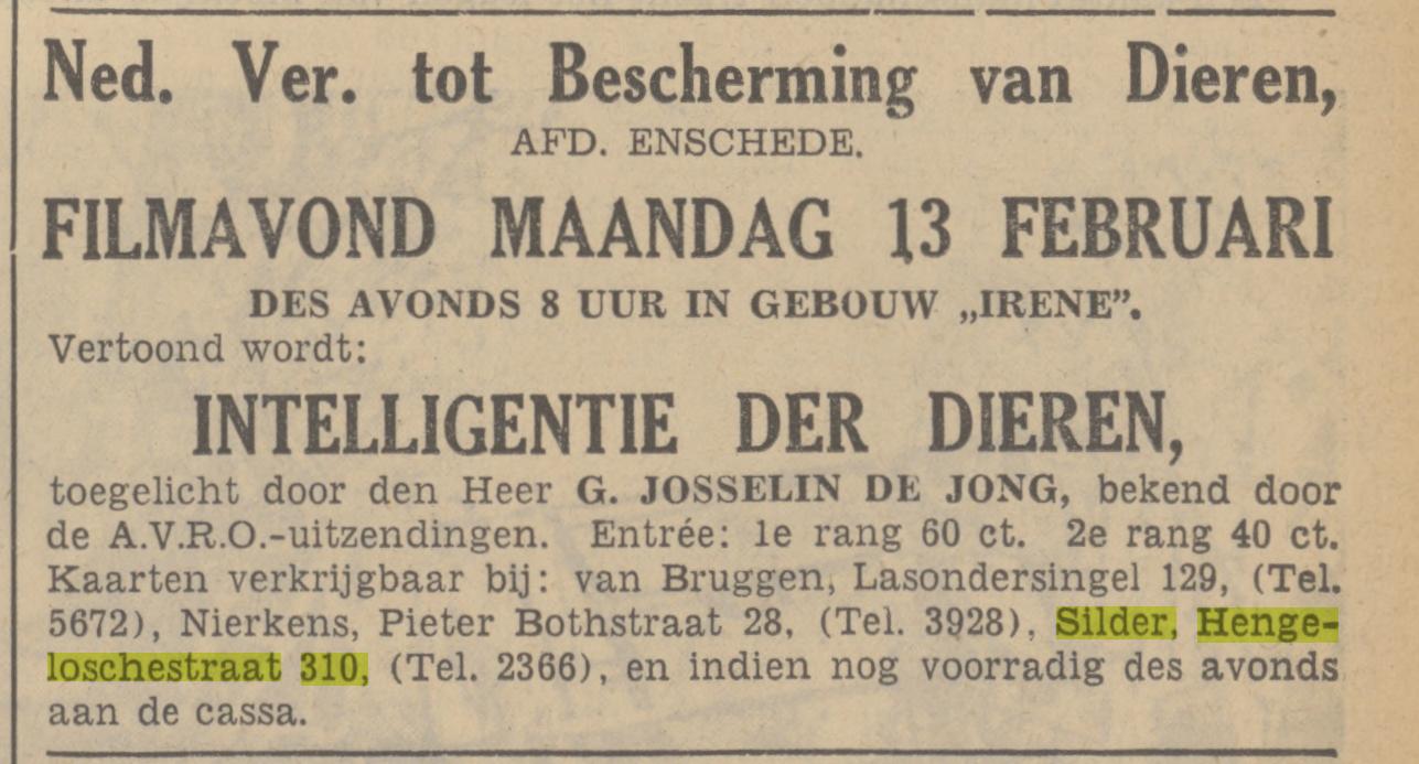 Silder, H.G.A. Insp. Dierenbescherming, Hengelosestraat 310.