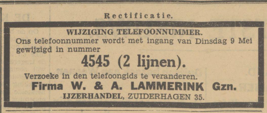 Lammerink Gzn., W. en A., In IJzerwaren, Zuiderhagen 35.