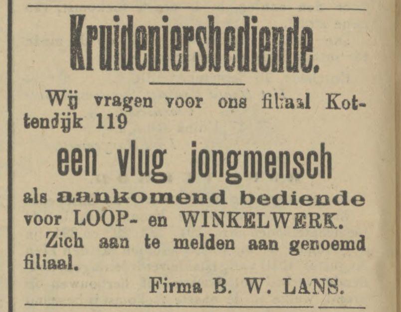 Lans, Fa. B.W., In koloniale waren, Kottendijk 119.