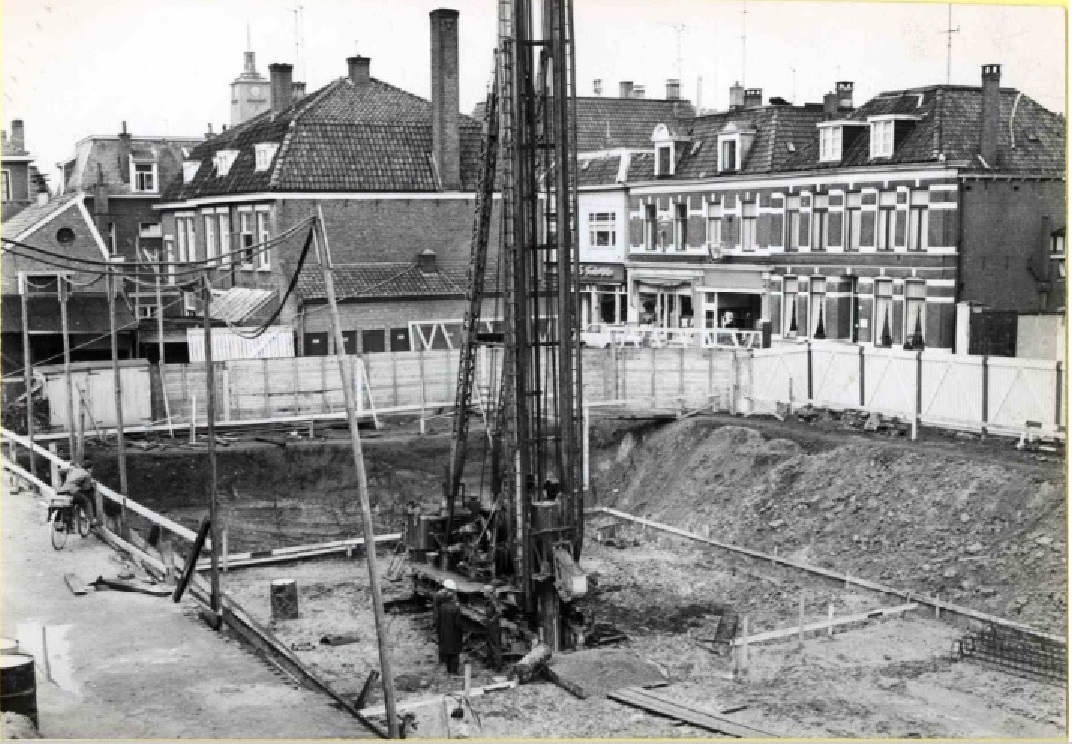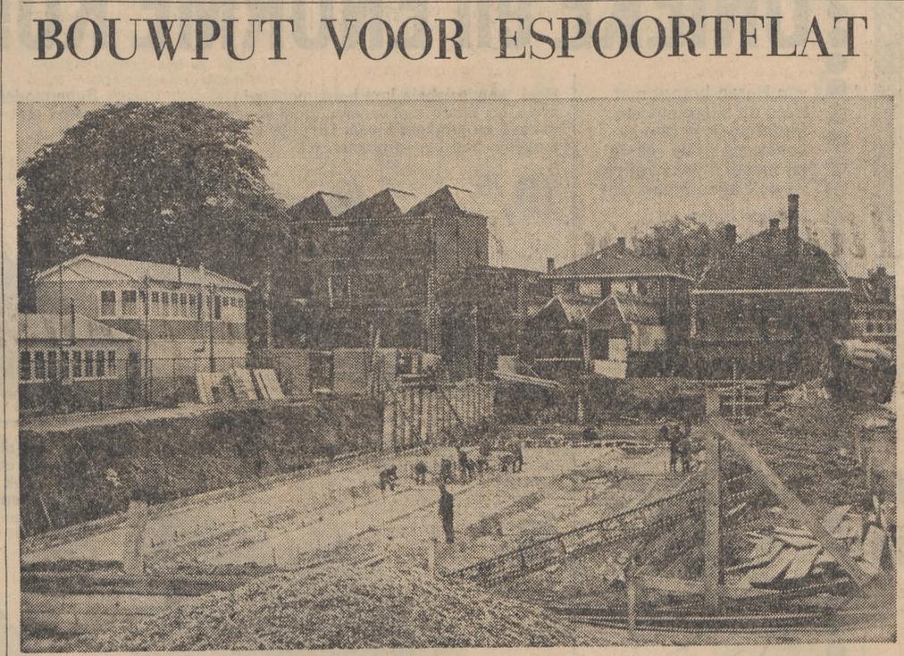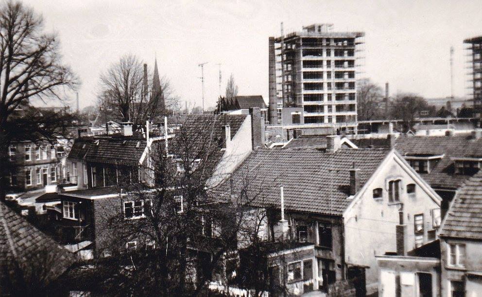 Gronausestraat 58 bouwput Espoortflat krantenfoto Tubantia 23-10-1964. achtergrond links fabriek N.V. Blenken a.d. Veenstraat.