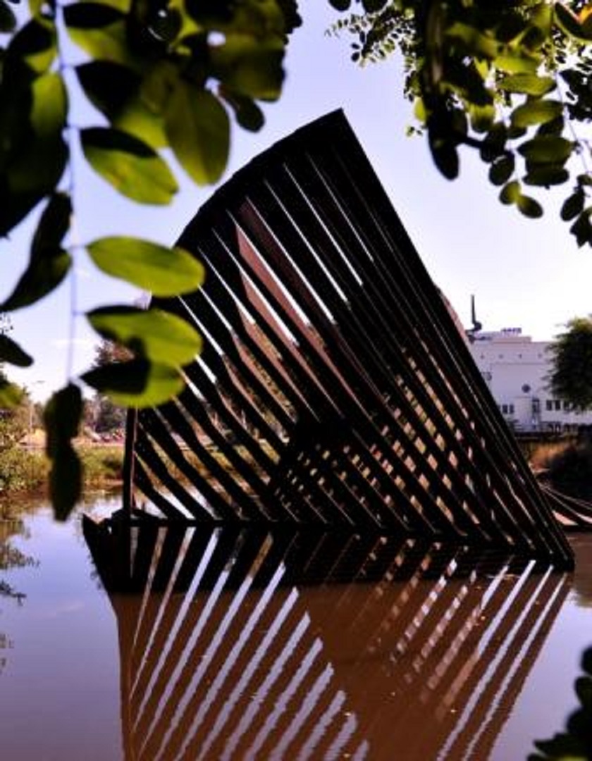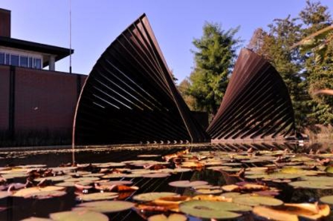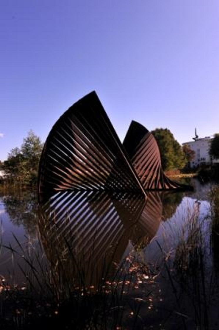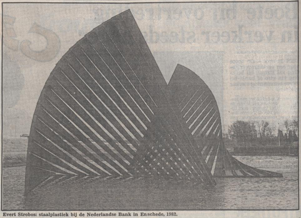 Auke Vleerstraat 1 kunstwerk Waaier van kunstenaar Evert Strobos bij Nederlandse Bank krantenfoto Trouw 15-3-1983.