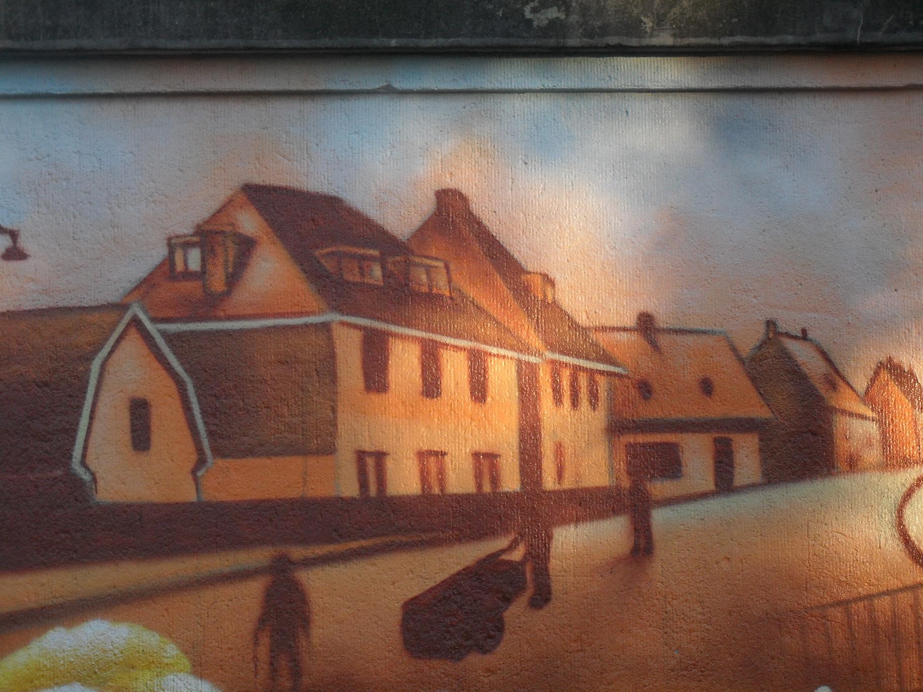 Wandbeschildering gemaakt aan de zijkant van de brug,