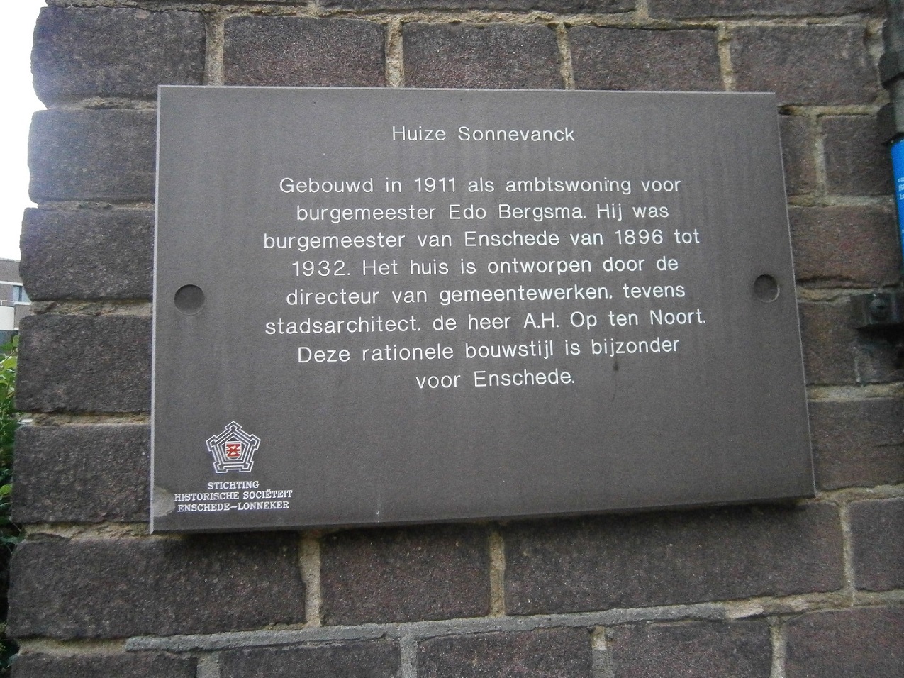 - Bisschopstraat 2 later De Ruyterplein en laterAriensplein 2 Huize SONNEVANCK, in 1911 gebouwd als burgemeesterswoning voor Edo Bergsma naar een ontwerp van de stadsarchitect A.H. Op ten Noort.jpg (57.23 KiB) 6414 keer bekeken