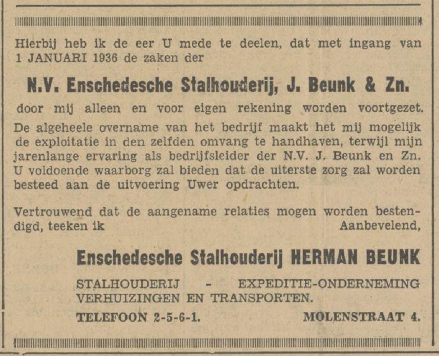 Beunk, J., Stalhouderij, Molenstraat 4.